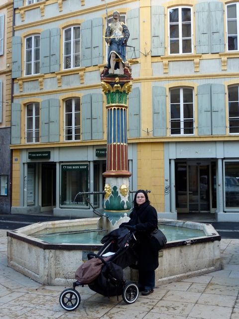 Martha and Sammy in front of the Justice Fountain. If you look carefully, you see that Lady Justice has the heads of kings, sultans, and popes at her feet. This makes me feel like I'm living in the right place.